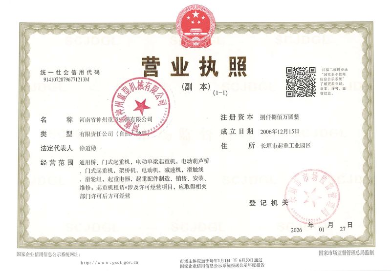 河南省神州重型机械有限公司 专注起重机制造多余年